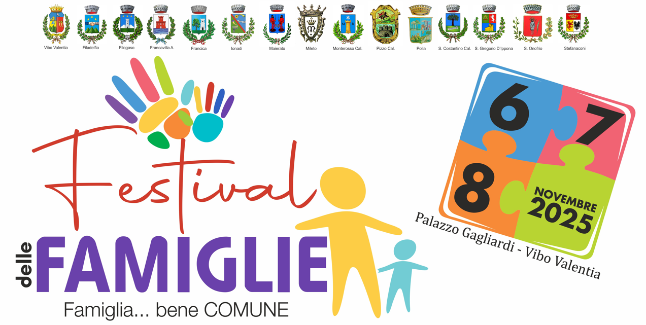 Il Comune di Vibo Valentia, in qualità di capofila dell’Ambito territoriale sociale, annuncia con entusiasmo la prima edizione del “Festival delle Famiglie - Famiglia... bene Comune”, un evento di tre giorni interamente dedicato alla famiglia di oggi, una manifestazione unica nel suo genere ed inedita nel panorama regionale, che si pone l’obiettivo di mettere al centro, per tre intense giornate, il ruolo della famiglia nello sviluppo della società ed il rapporto all’interno delle famiglie e tra genitori e figli.